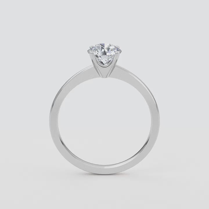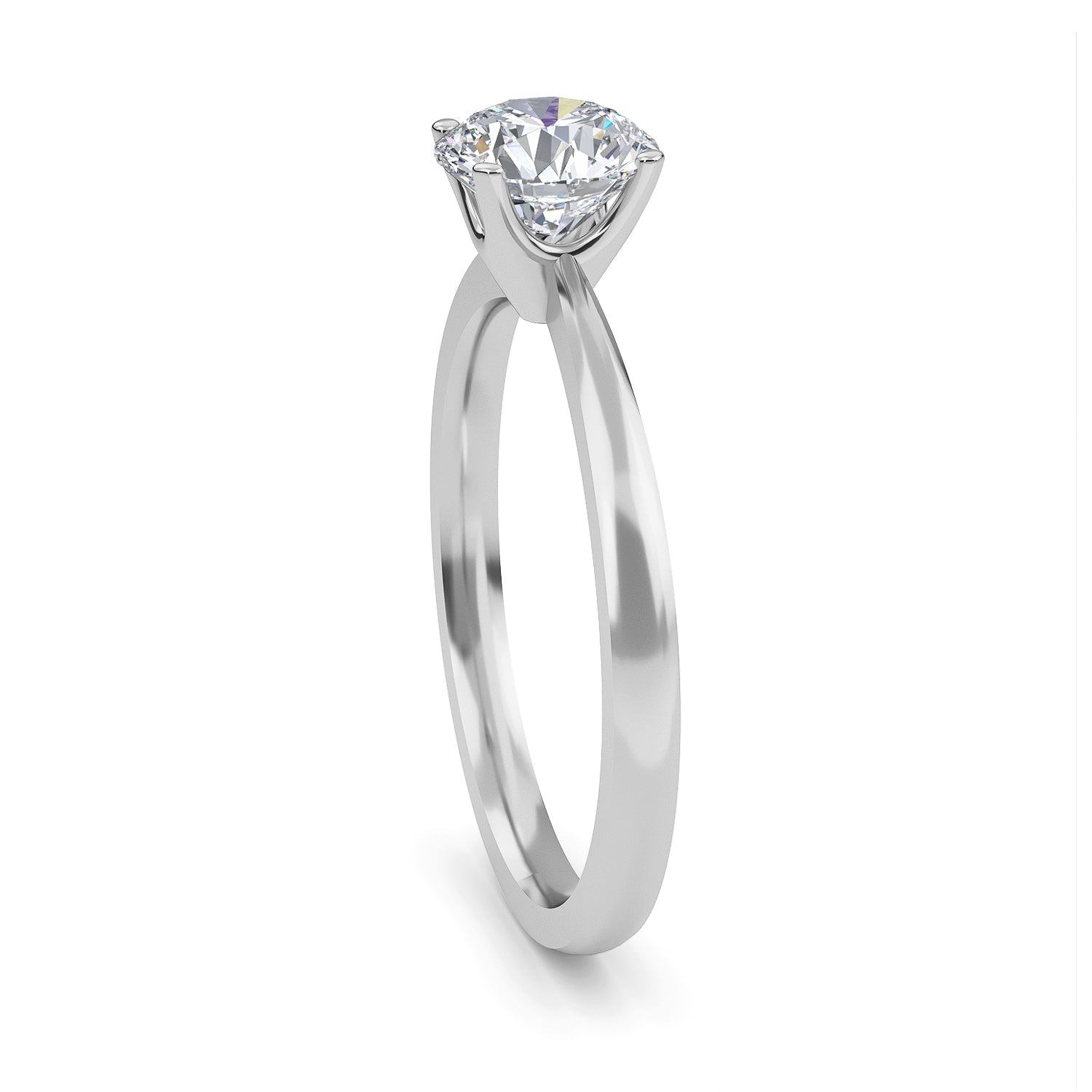 The Everly Round is a breathtakingly elegant symbol of everlasting love. Its four-prong basket setting highlights a round brilliant cut center stone, housed in a smooth and delicate 2.1mm tapering band. Crafted with exquisite attention to detail, this ring exudes sophistication and timeless beauty.