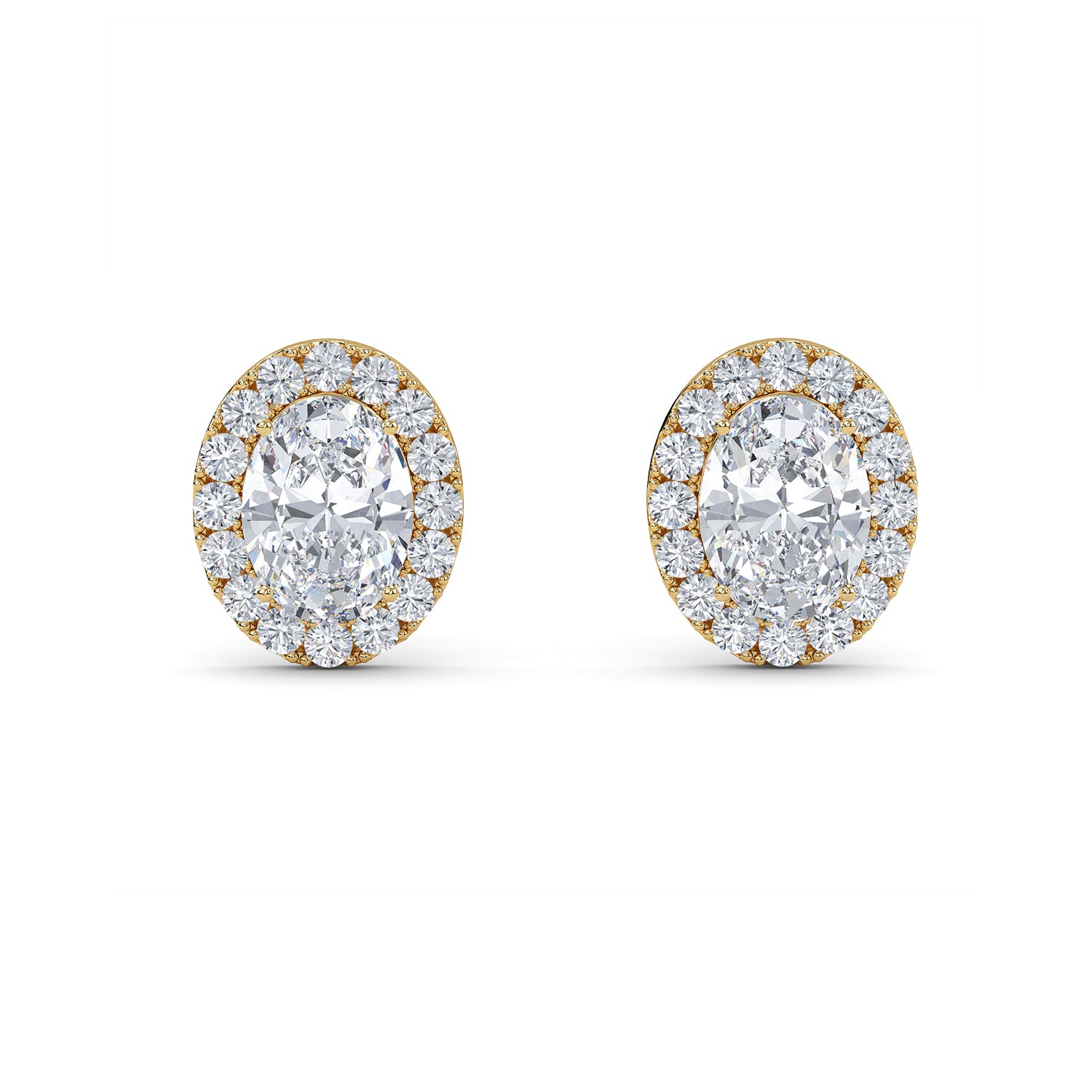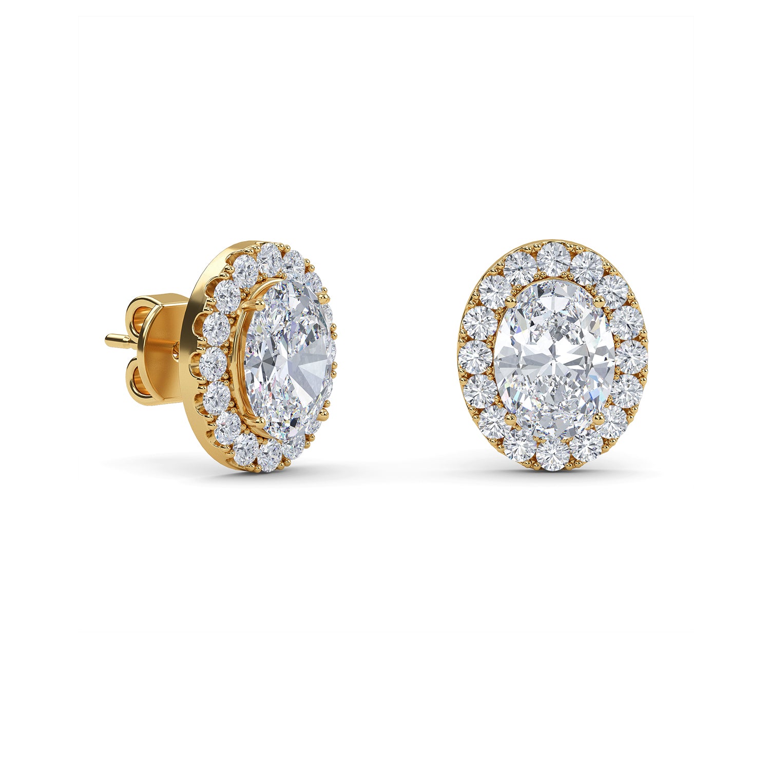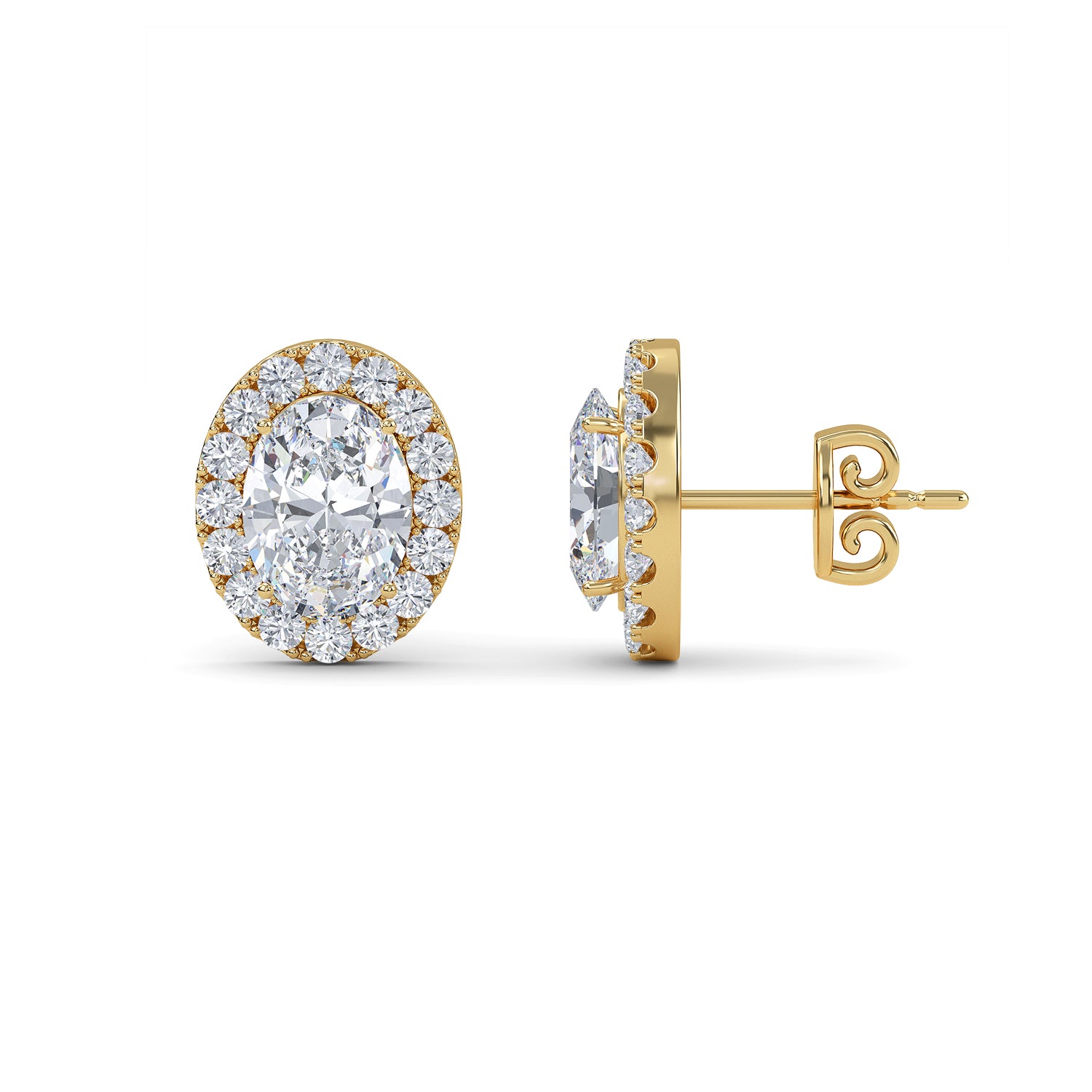 Add a hint of sparkle to your look with our Divine Oval Studs. Boasting a halo of diamonds that cradle an oval cut center stone, these timeless earrings will become a staple in any jewelry box. Designed to bring a divine elegance to your outfit, these oval studs are perfect for special occasions.