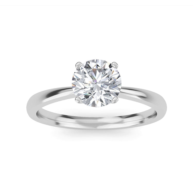 The Everly Round is a breathtakingly elegant symbol of everlasting love. Its four-prong basket setting highlights a round brilliant cut center stone, housed in a smooth and delicate 2.1mm tapering band. Crafted with exquisite attention to detail, this ring exudes sophistication and timeless beauty.