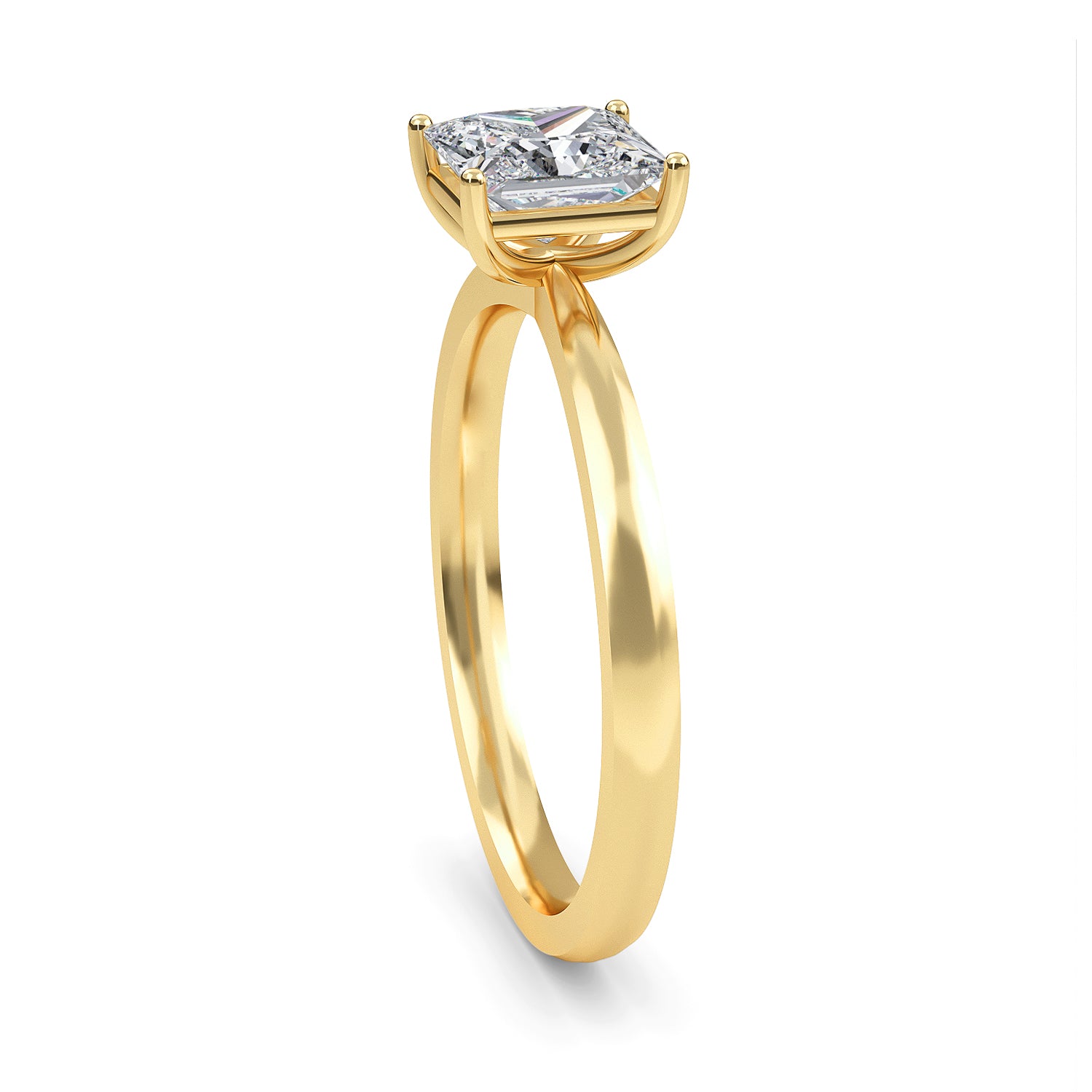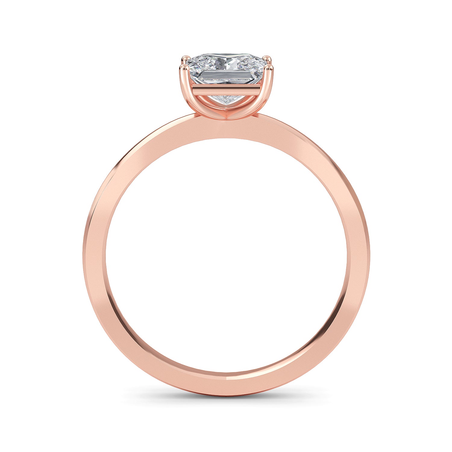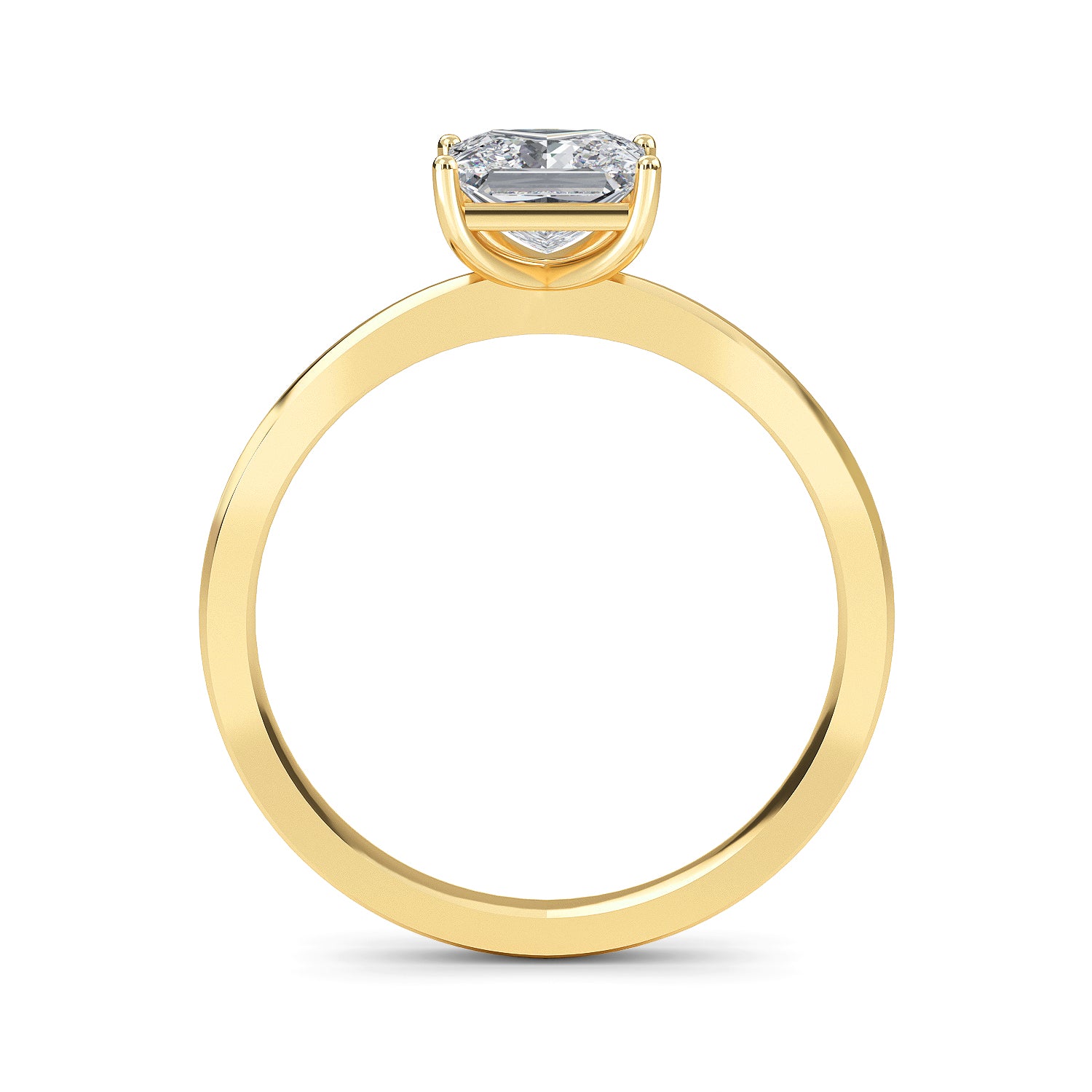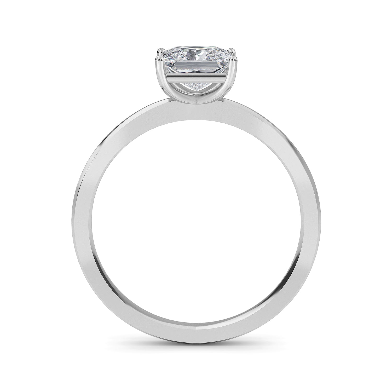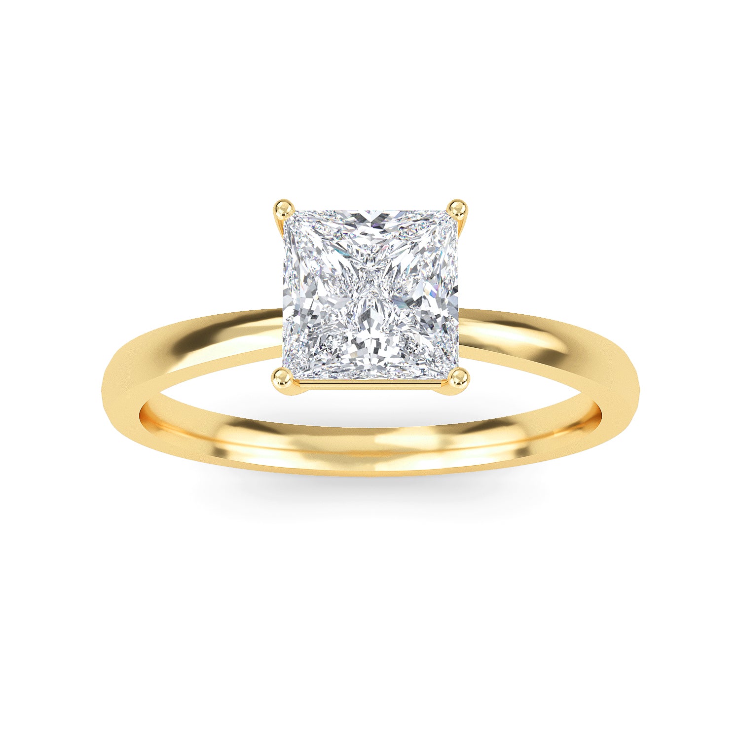 Adorned with a classic princess cut center stone, the Belle Comfort engagement ring features a sophisticated 1.8mm tapering band and a four prong case setting. This timeless design exudes refinement, evoking pure elegance and grace.