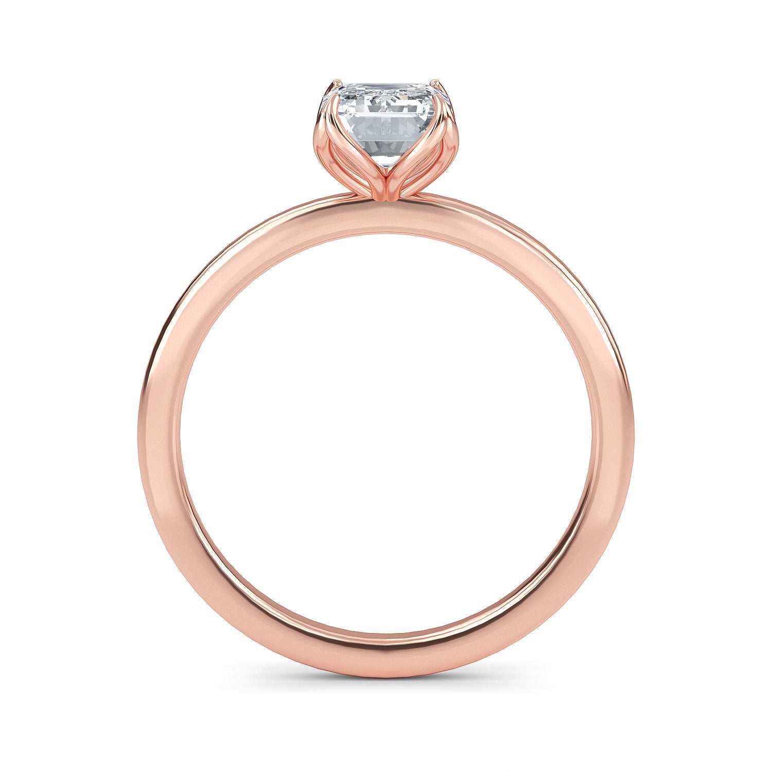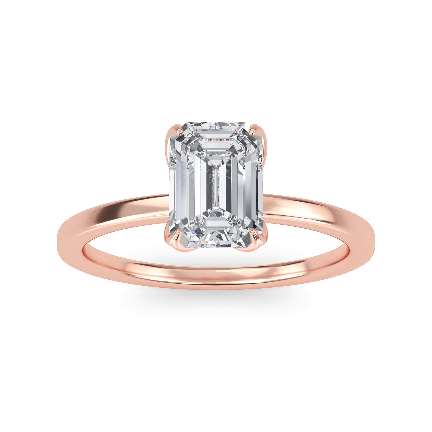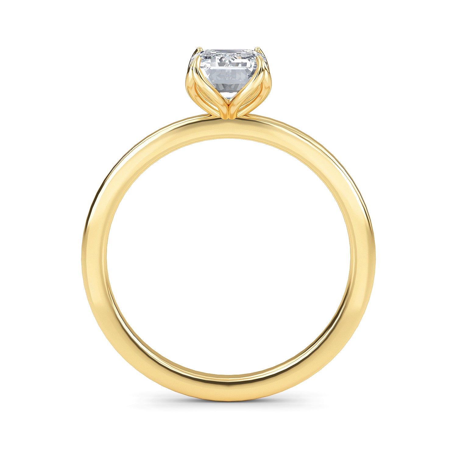 This exquisite diamond engagement ring, Marseille, is the definition of elegance with its emerald cut center stone twinkling in a four prong setting, carefully nestled within a delicate 1.8mm band. A timeless classic, this ring is sure to bewitch you with its captivating sparkle.