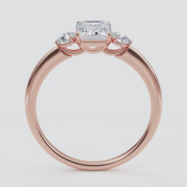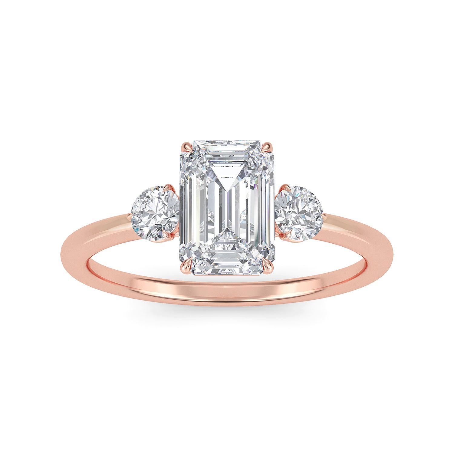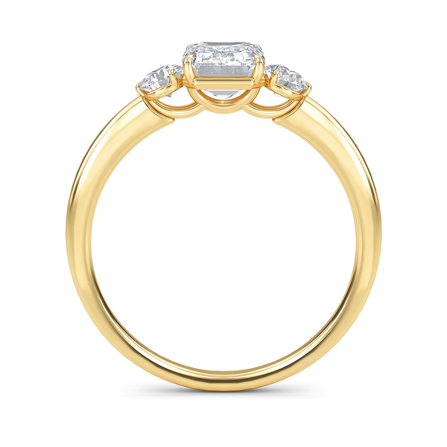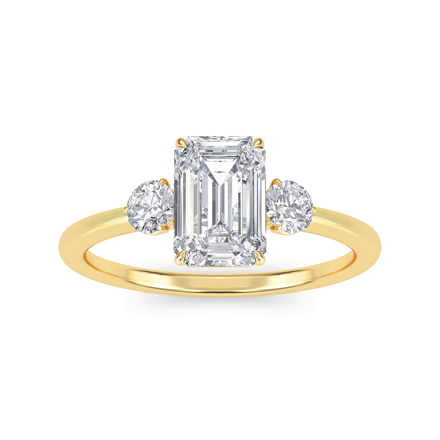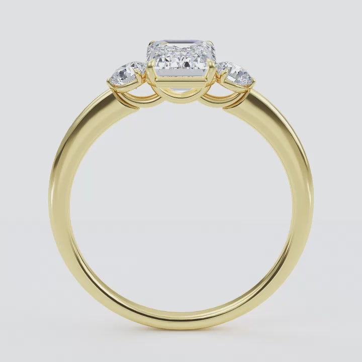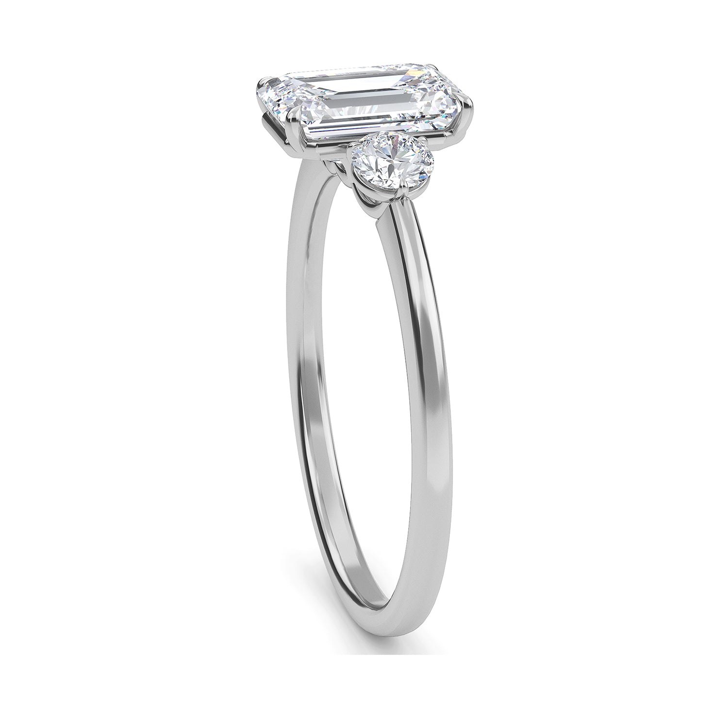 The Nova engagement ring is a timeless classic, boasting a sophisticated three-stone design and a luxurious emerald cut center stone. The 1.8mm tapered band wraps perfectly around the finger, creating an elegant and exclusive solitaire look. Crafted with meticulous attention to detail, the Nova is sure to make for a memorable proposal moment