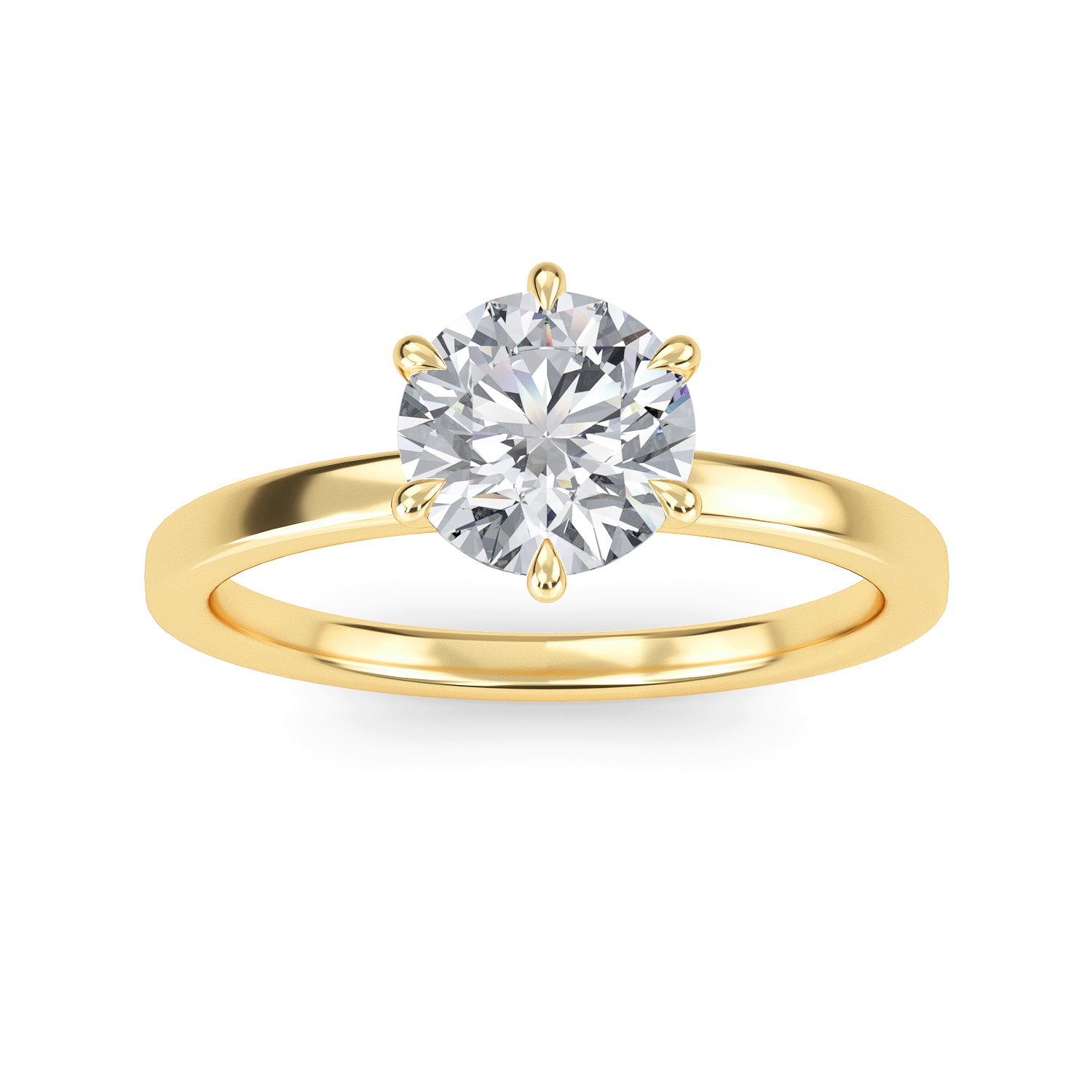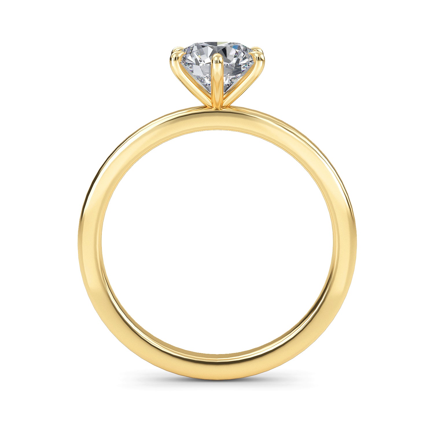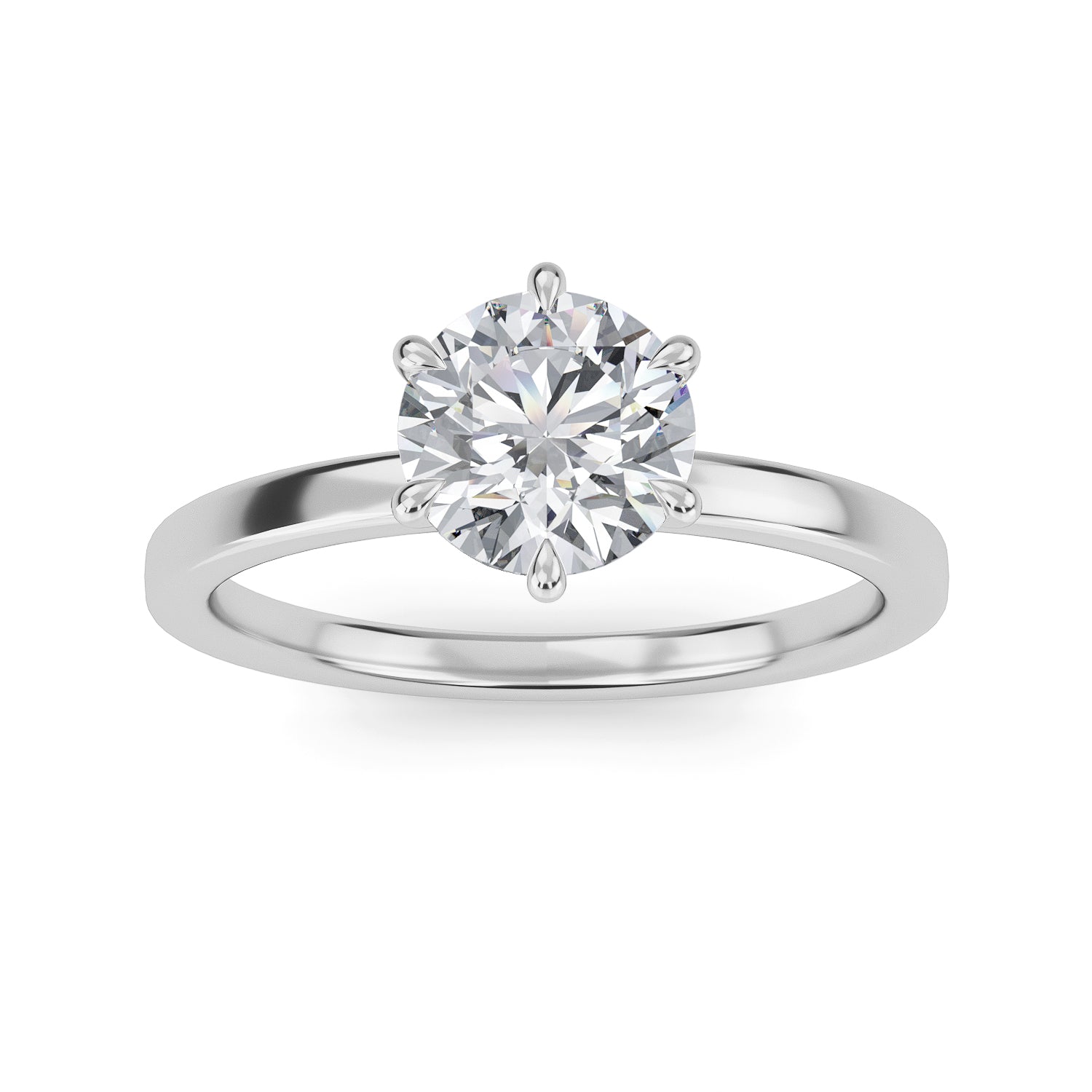 Experience the elegance and sophistication of the Six-Prong Petite Comfort Fit. Featuring a round brilliant cut center stone and a slender 1.5mm band, this design exudes understated refinement and luxury. Perfect for special occasions or everyday wear.
