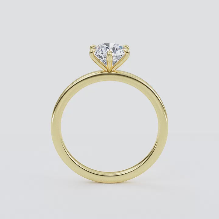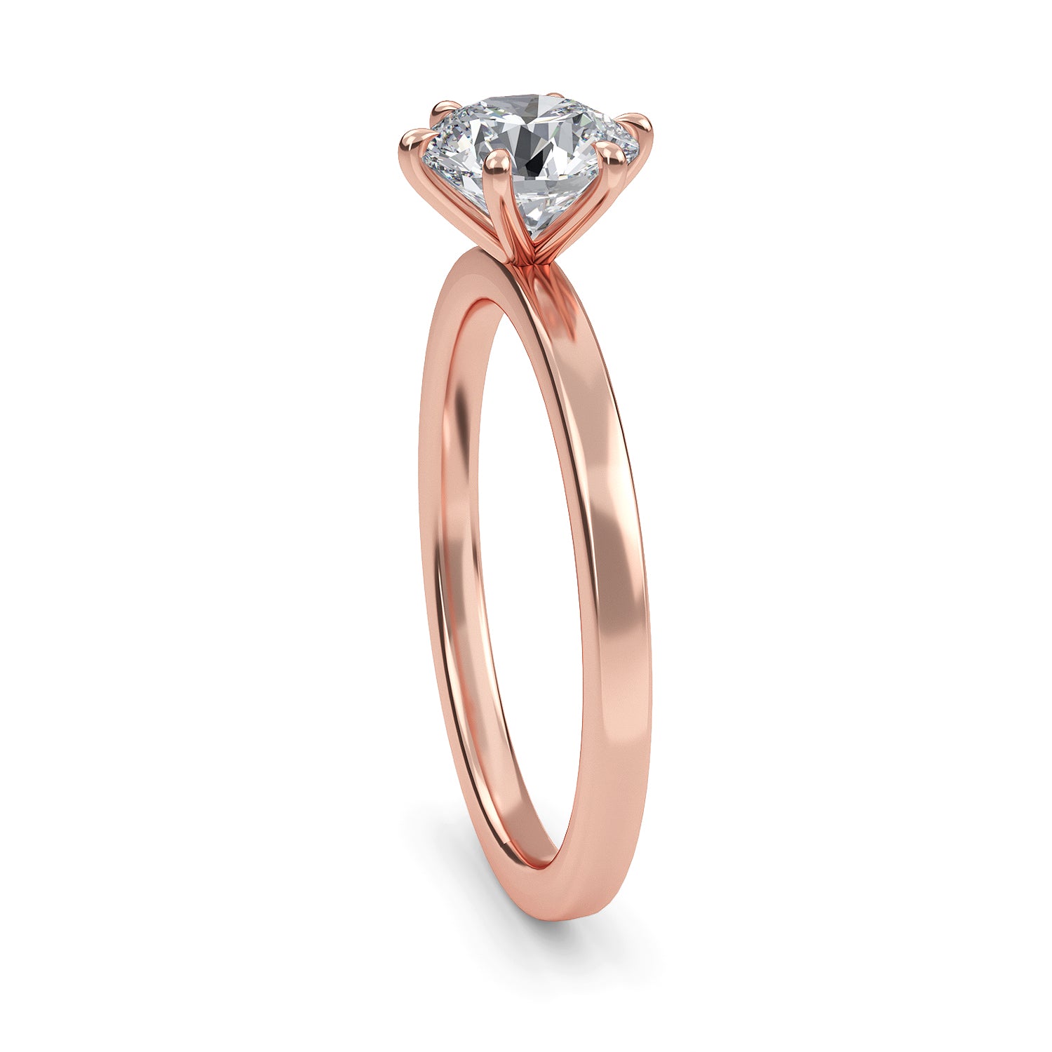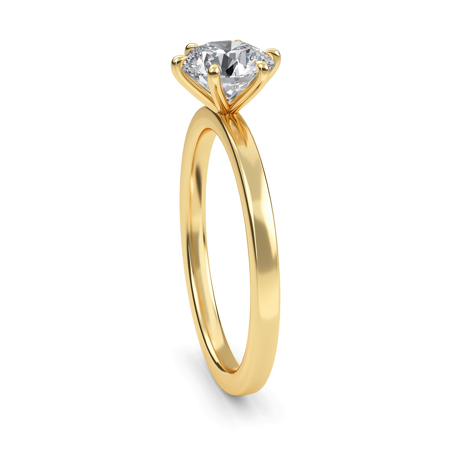 Experience the elegance and sophistication of the Six-Prong Petite Comfort Fit. Featuring a round brilliant cut center stone and a slender 1.5mm band, this design exudes understated refinement and luxury. Perfect for special occasions or everyday wear.