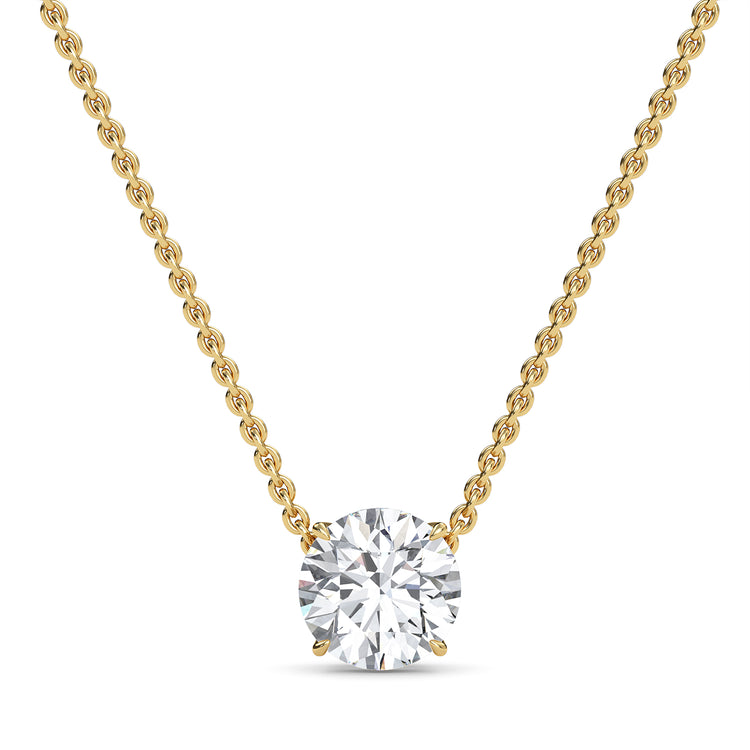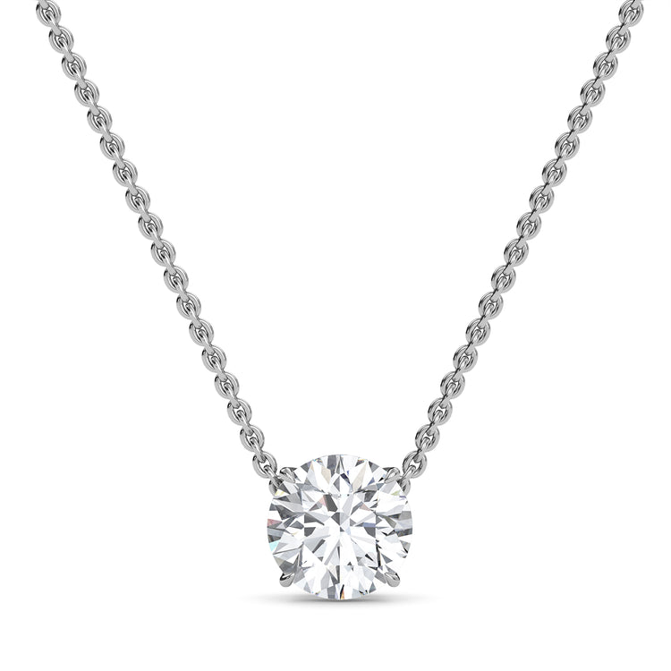 A beautiful diamond is accentuated in this elegant, classic four prong pendant. The pendant dangles gracefully from a delicate cable chain.