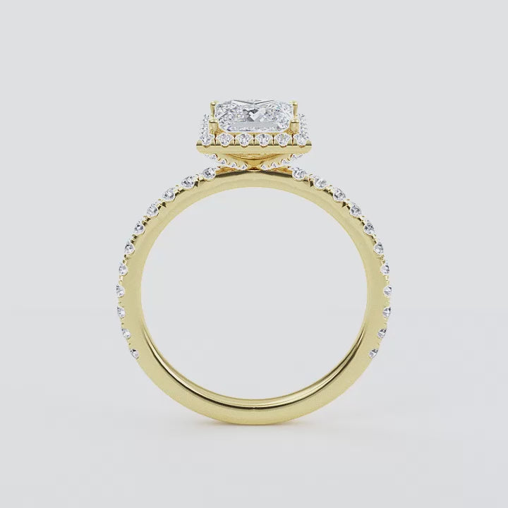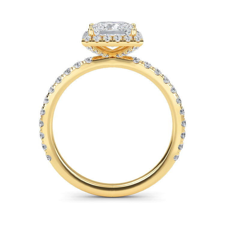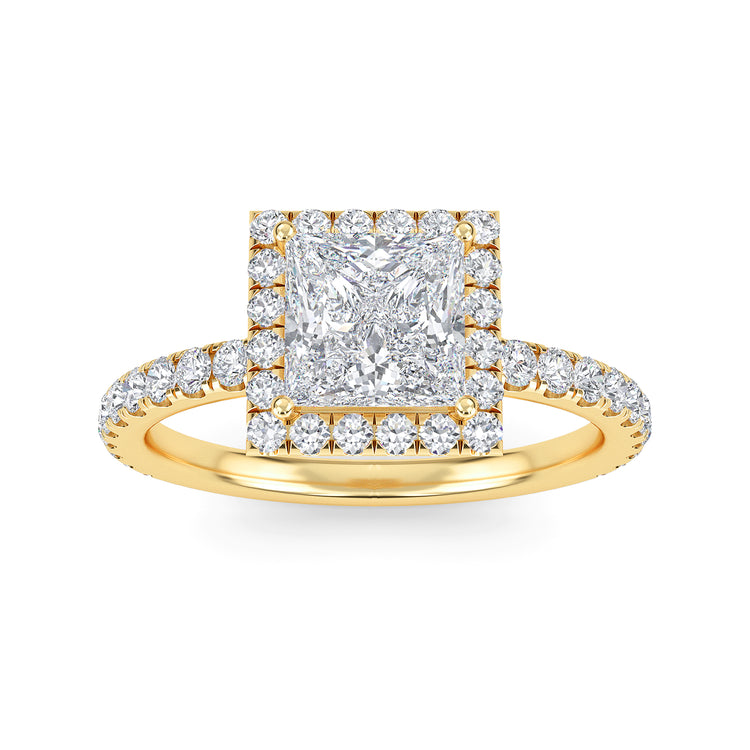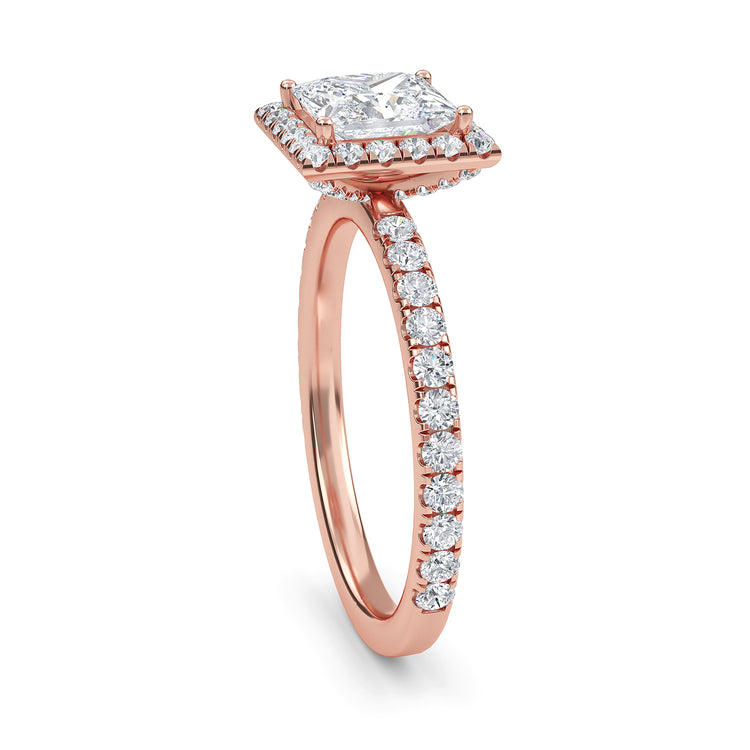 Our Fancy Halo is a truly luxurious adornment perfect for any occasion. This stunning ring features a 2.2mm diamond encrusted band, a princess cut center stone, and hidden accents all crafted to perfection. Whether treating yourself or a beloved, this ring is sure to make a lasting impression.