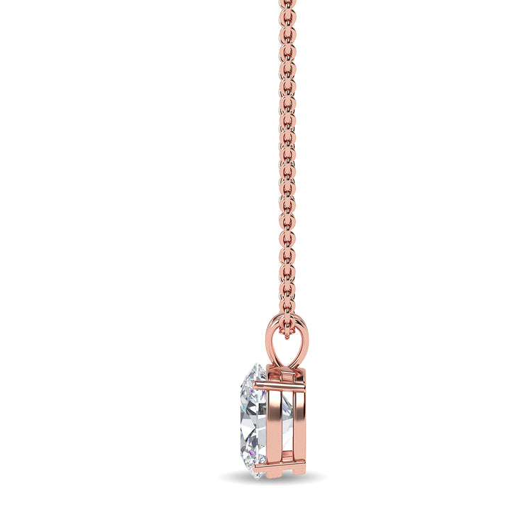 Show off your sophisticated style with the Clara Oval Diamond Pendant. Crafted from 18k gold with a four-prong basket setting and bezel-set diamond, this exquisite solitaire pendant adds a touch of class and glamour to any ensemble. Hangs stylishly from an 18 inch cable style lobster clasp chain, perfect for any special occasion.