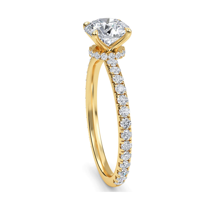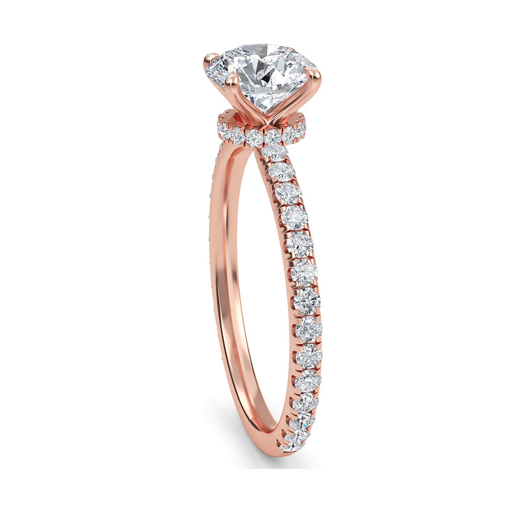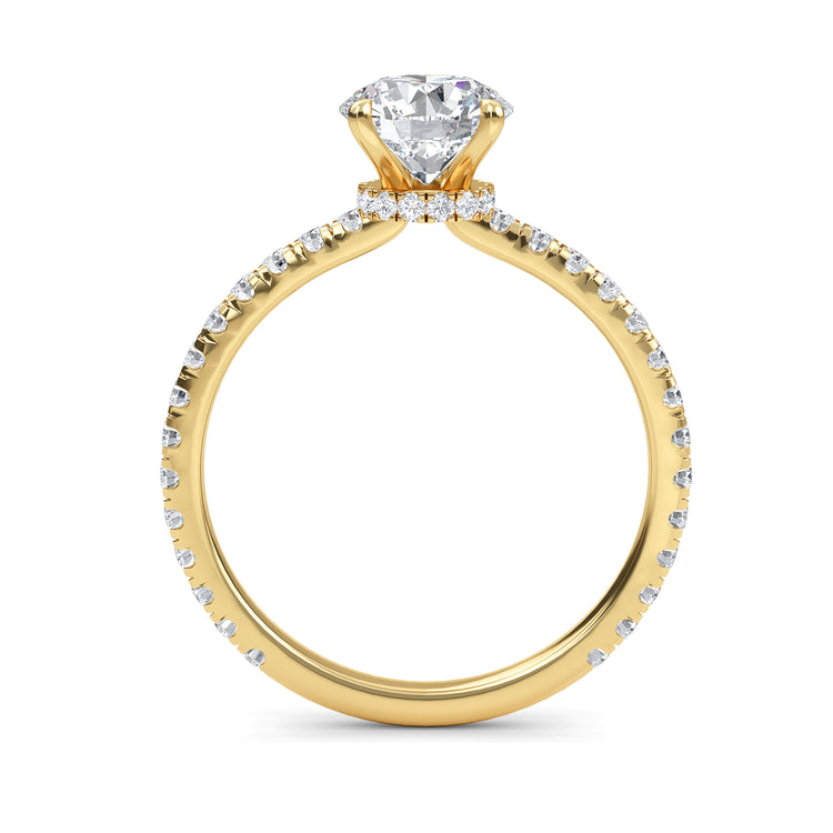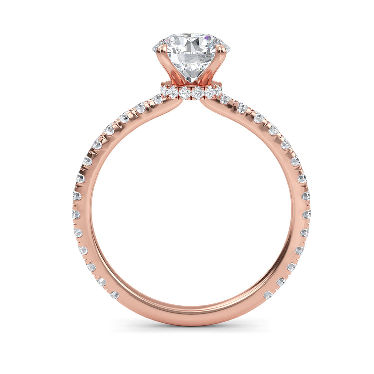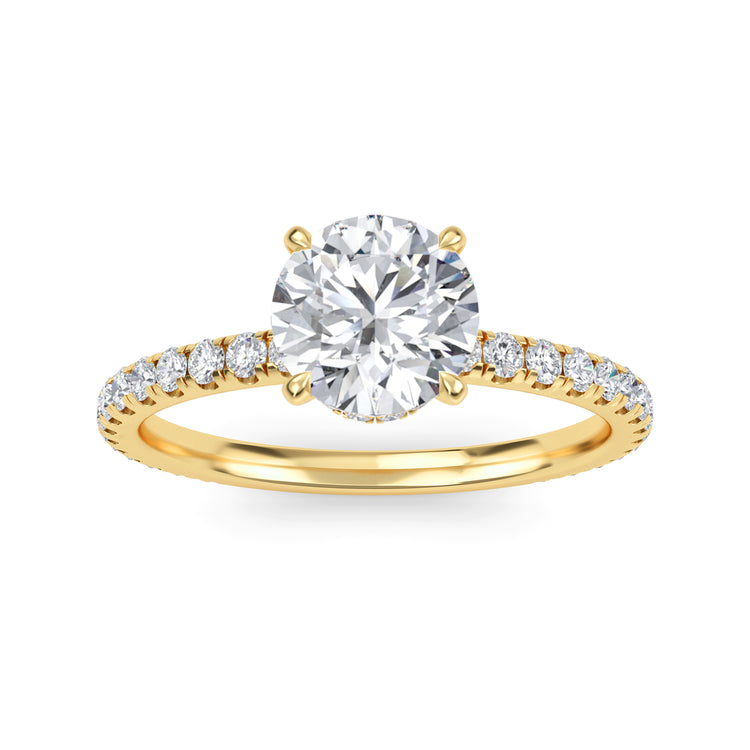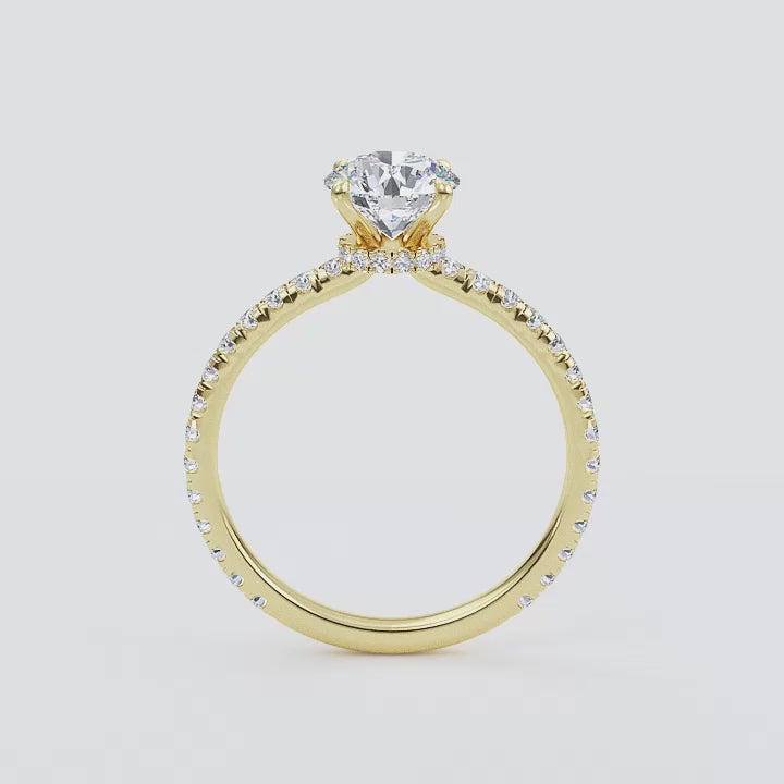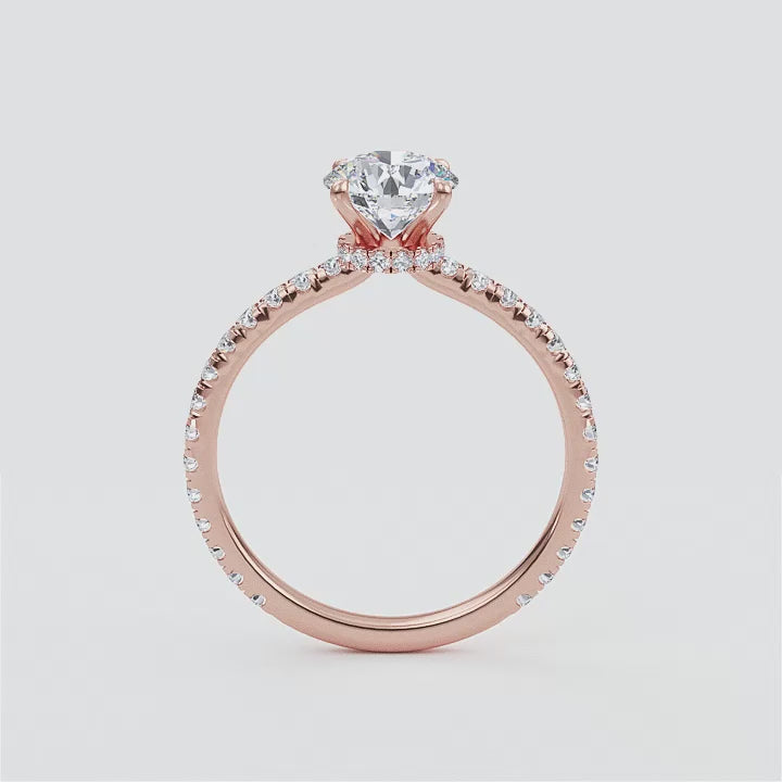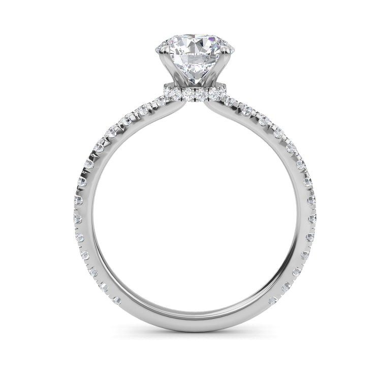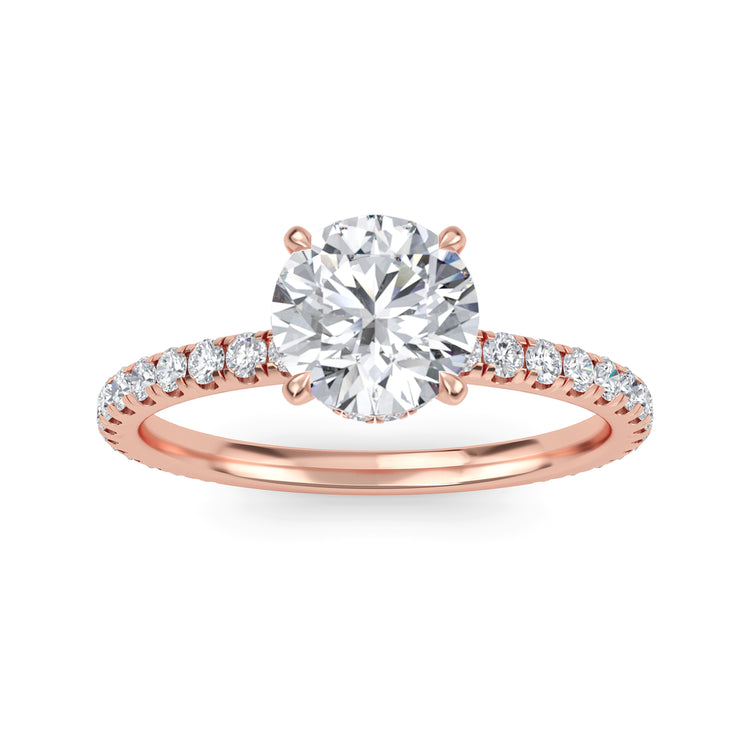 Su ser querido quedará cautivado por un diamante de talla redonda única de talla intrincada que presenta un acento oculto de pequeños diamantes de talla redonda para agregar un poco de brillo adicional.