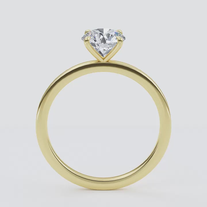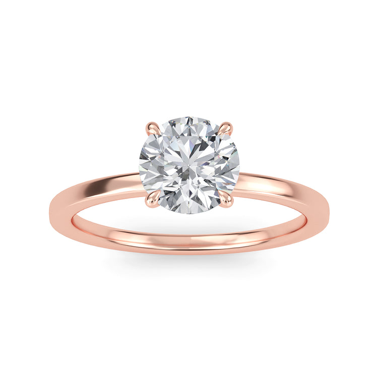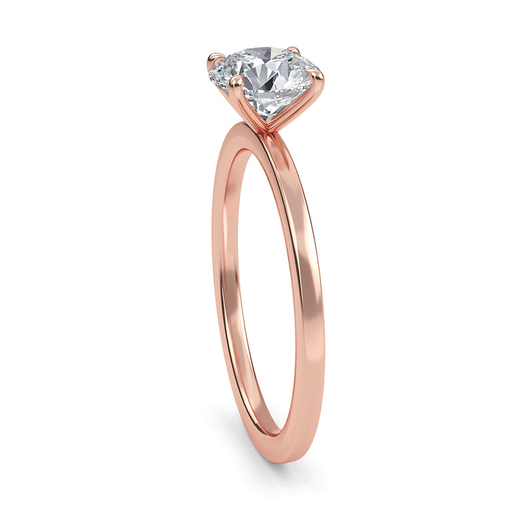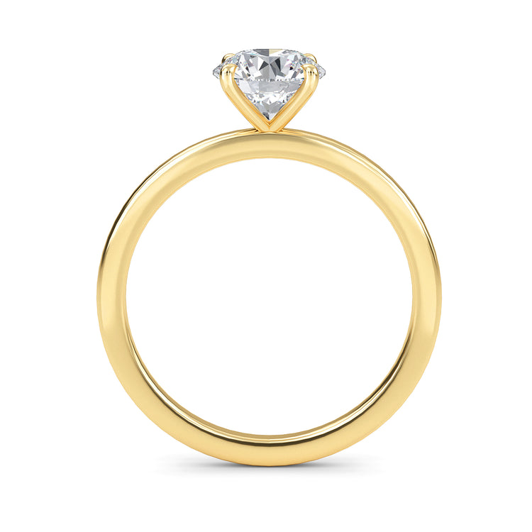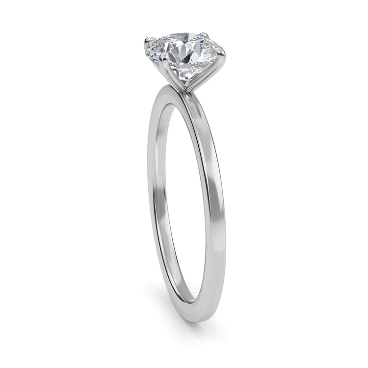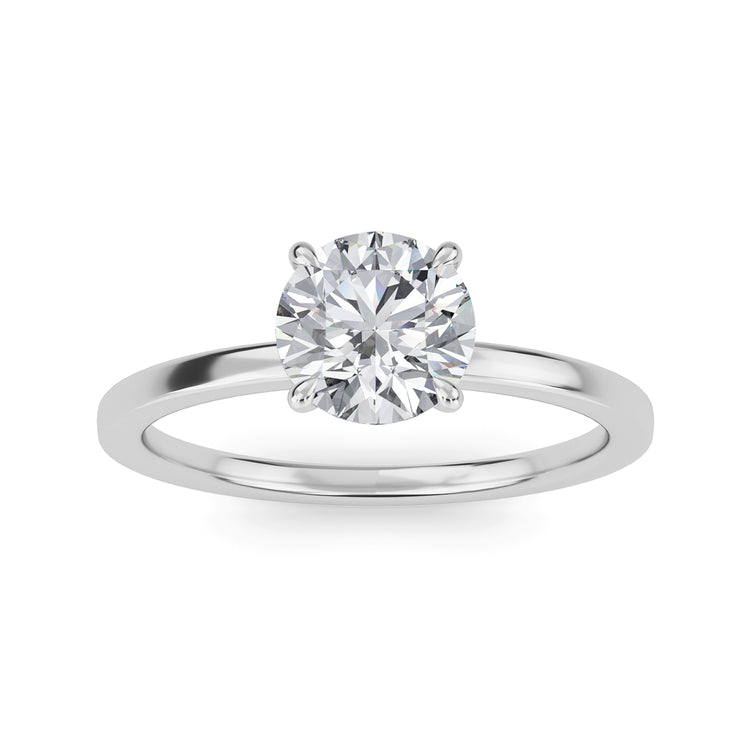 Este solitario atemporal presenta una banda pequeña que se estrecha para abrazar la gema central en delicadas cuatro puntas.