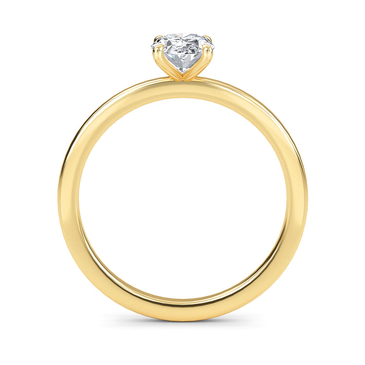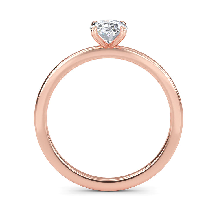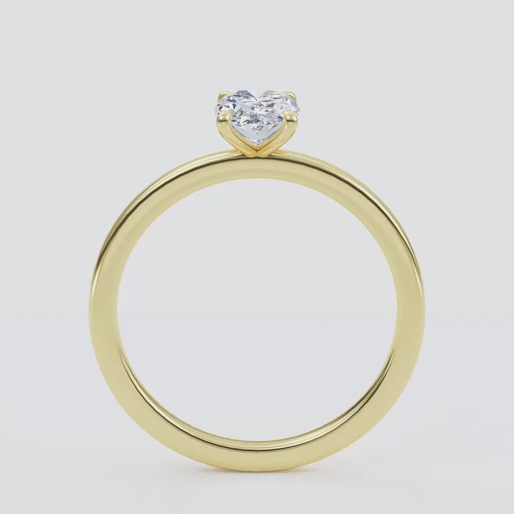 Ce solitaire intemporel est doté d'un petit anneau qui se rétrécit pour embrasser la pierre précieuse centrale dans quatre griffes délicates.