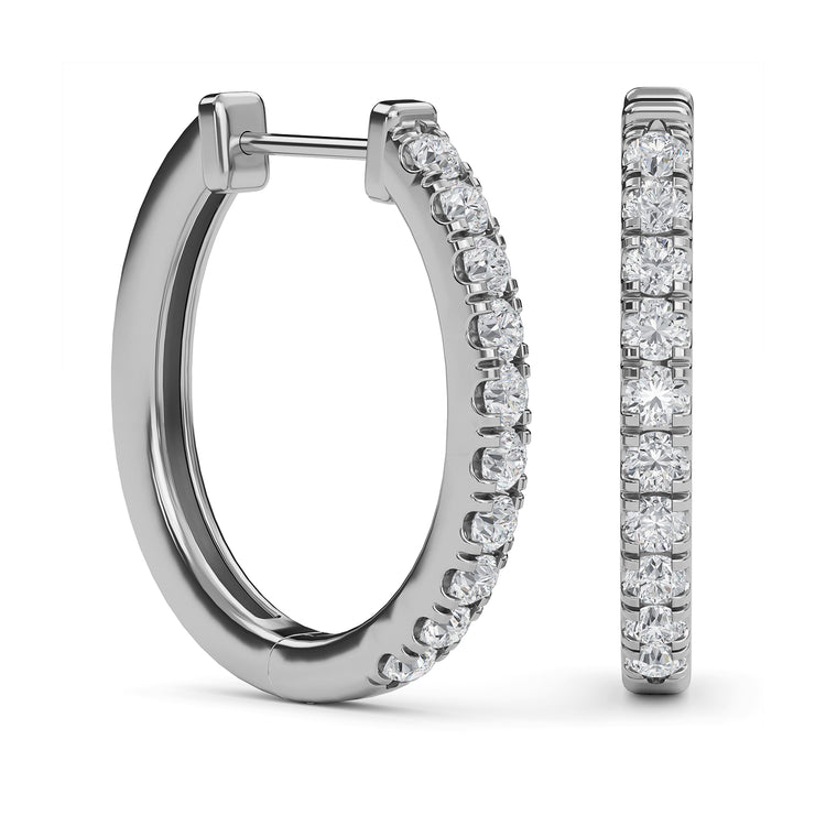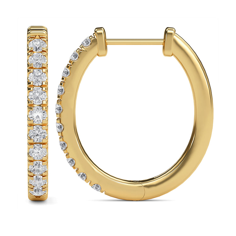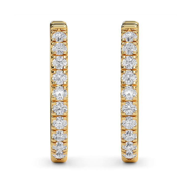 Ces créoles huggie glamour sont ornées d'une rangée de diamants éblouissants sertis sur griffes dans de l'or brillant. Sécurisées par des fermoirs à charnière, ces boucles d'oreilles en diamant sont parfaites pour un usage quotidien.