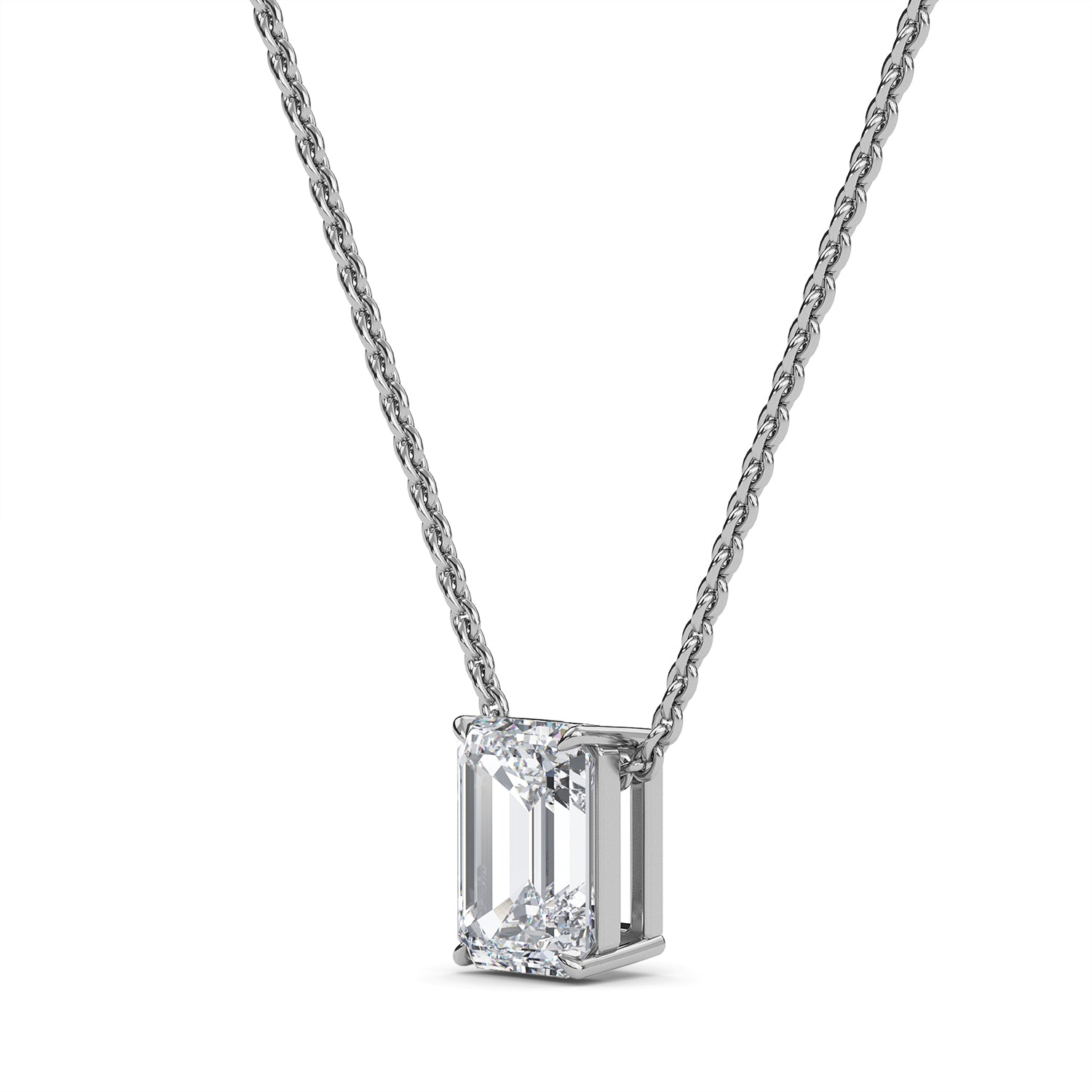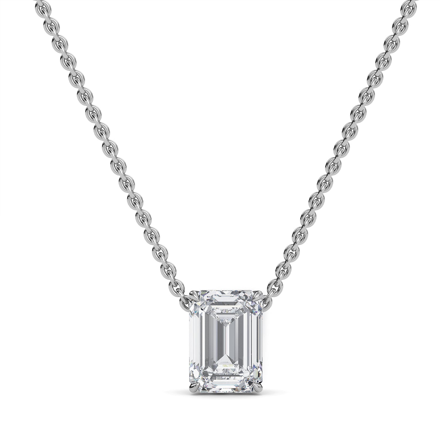 Ce pendentif en diamant Eva Emerald est un élégant diamant émeraude qui brille avec une grâce et une beauté traditionnelles.